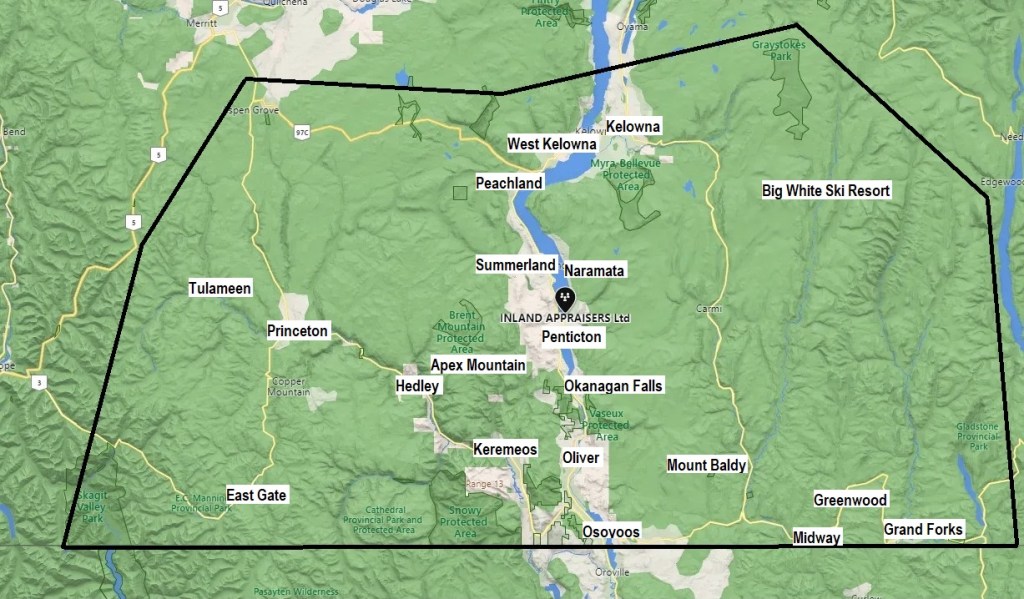 Inland Appraisers Ltd. services a wide region with experience and inhouse data held in the following areas.